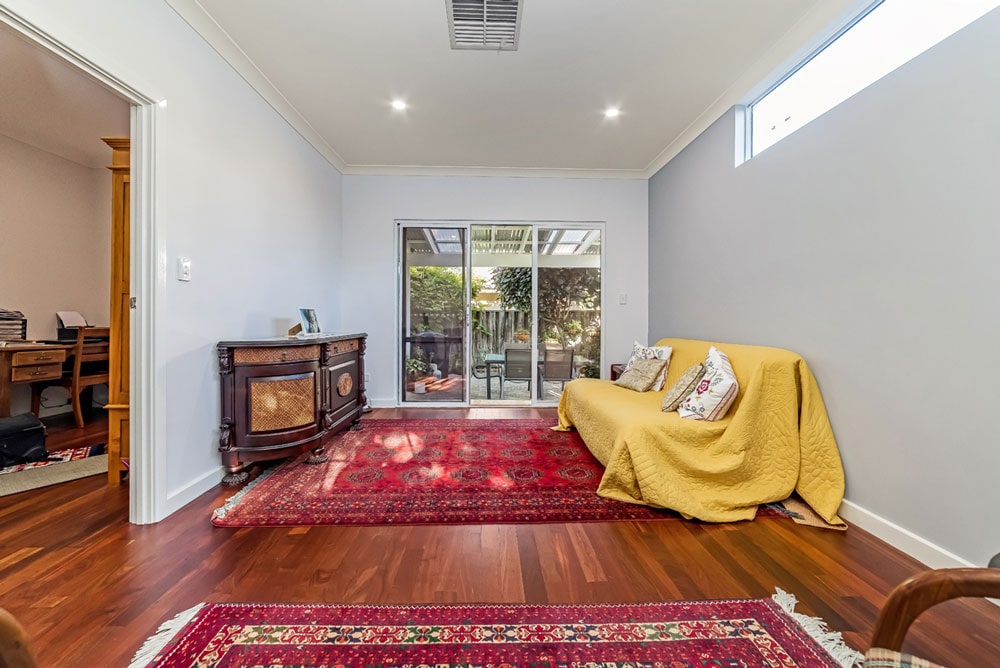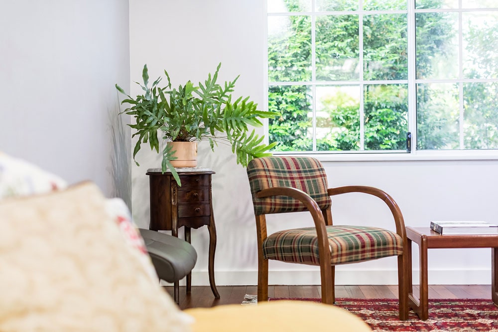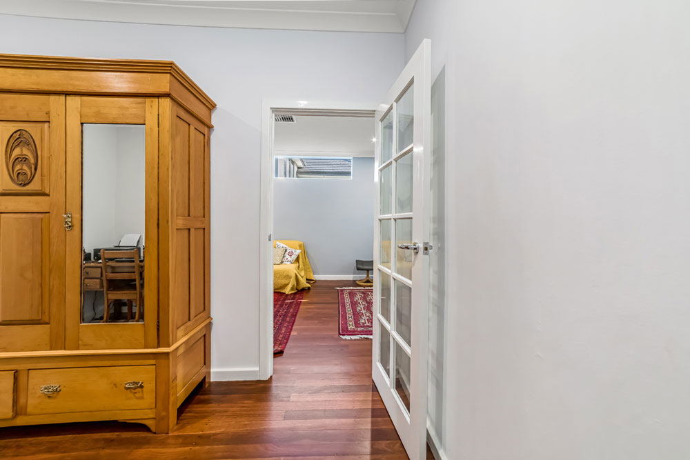 The room has fenestration on three sides making a very light-filled room with views of the street and garden. The timber weatherboard construction was continued to enhance the quaintness of the home.